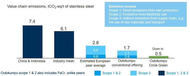 With all the focus on circularity and recycling we should not forget the burden of decarbonizing what we cannot recycle. Achieving a 100 % recycling rate for stainless steel is not a feasible target as we still see an increasing demand. That’s why Outokumpu is also focusing on primary material sources e.g., Nickel and Chrome – as essential ingredients of stainless steel – to reduce their emissions. On the one hand that requires assessment and management of our supplier base and on the other hand decarbonizing our own ferrochrome operations.