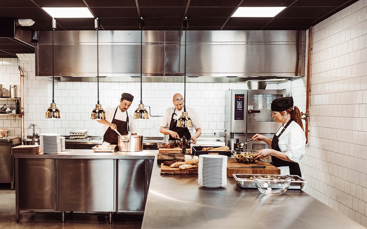 Designed to optimize performance and efficiency, the commercial kitchen is a dynamic environment with conflicting needs: extreme heat, extreme cold; wet, dry; storage, service; preparation, cooking. Stainless steel adds the advanced functionality this space demands to meet needs of hygiene and corrosion resistance in a space where health codes, ergonomics and traffic flow create unique challenges.