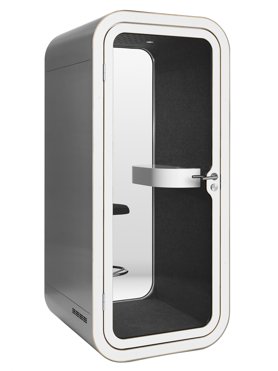 Described as “the world’s smallest office”, the soundproof booth is designed for private phone calls in open-plan offices. It contains a ventilation system, a charging system, optional hi-fi and an ergonomic chair, and it can be configured in 1,000 different stylized options to suit any office.