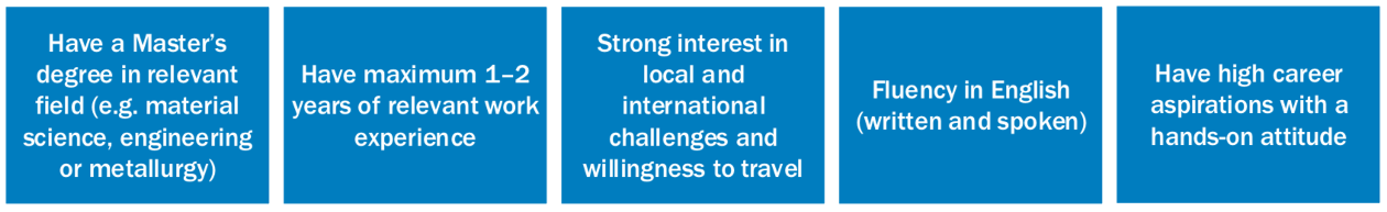 During the program, you will participate in a Lean Six Sigma Green Belt training and become responsible for improvement projects. You will also get an opportunity to share your knowledge and experiences in Outokumpu’s international talent network program. To help you to develop your potential, a mentor from the senior management will support you during your development path.