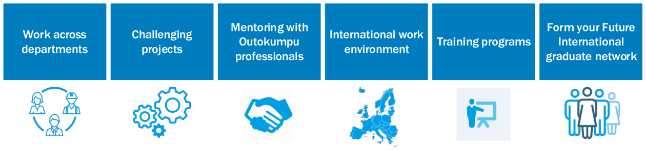 Outokumpu Technical Graduate program is a three-year program that familiarizes you with Outokumpu's technical processes. During the Technical Graduate program you'll develop your competencies and gain valuable experience by working with demanding and diverse technical assignments.