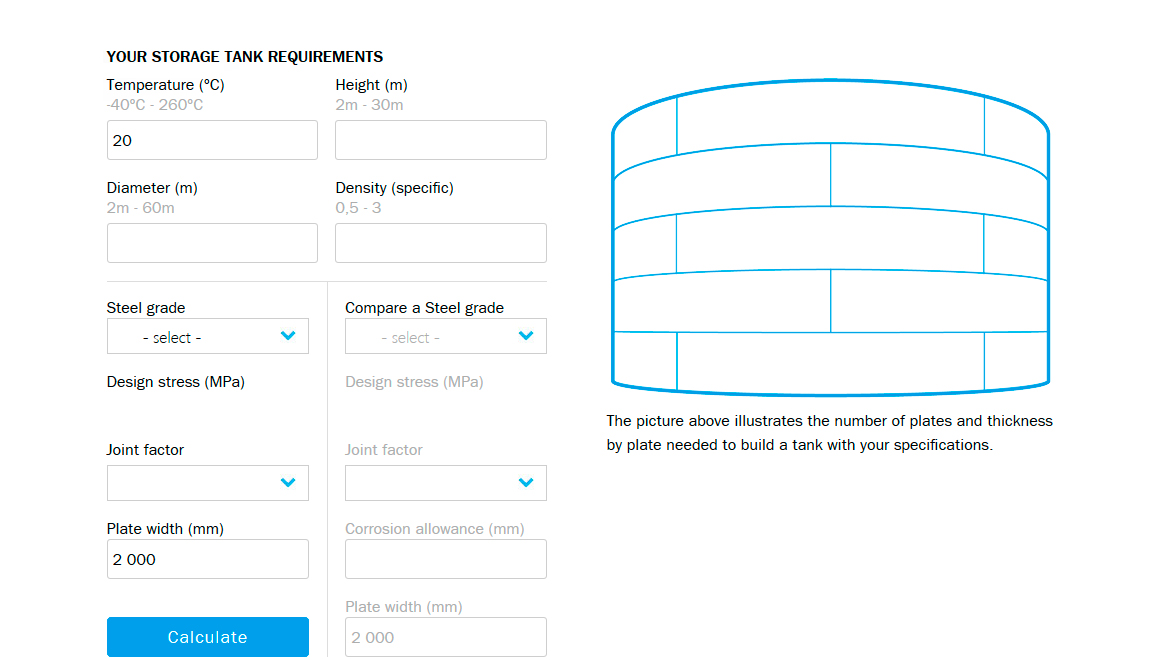 It is called the ‘Storage tank shell thickness calculation tool’, with ‘shell’ referring to the walls of the structure, explains Peder Claesson, Outokumpu Product Manager for Forta. A fair degree of computation is needed to determine how strong each section of the shell needs to be and hence how much steel is needed overall. “Simply put, when you fill the tank up with some sort of liquid, you will have the internal load. The thickness of the shell is not going to be the same all over – it’s going to be thinner on the top and thicker on the bottom because that’s where you have the most pressure,” he says.