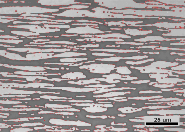 The duplex microstructure contributes to the high mechanical strength and high resistance to stress corrosion cracking. Knowing the fraction of each phase present in the steel is vital in establishing that the material will have the desired properties.