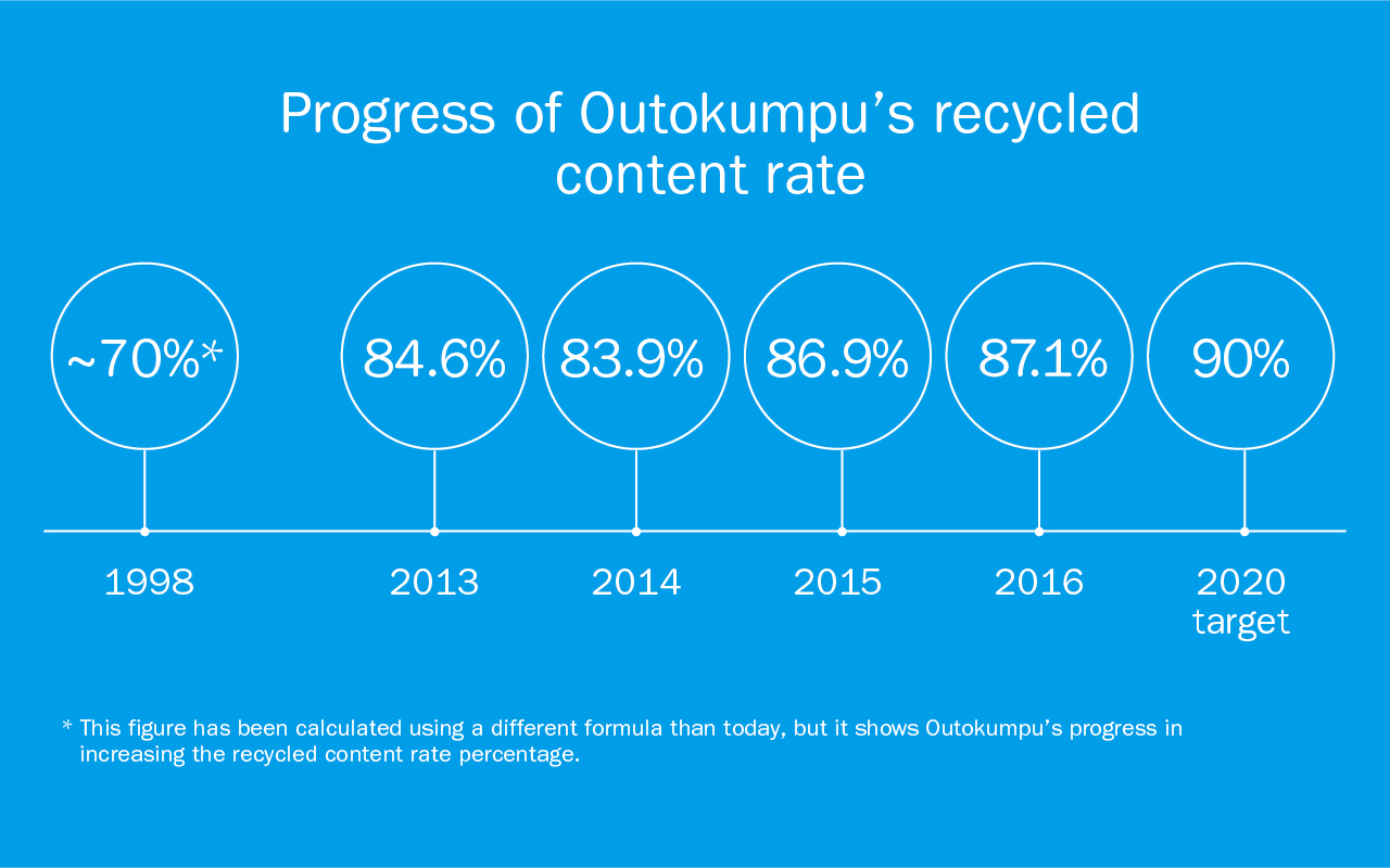 By 2020, Outokumpu’s target is to increase the recycled content to 90%