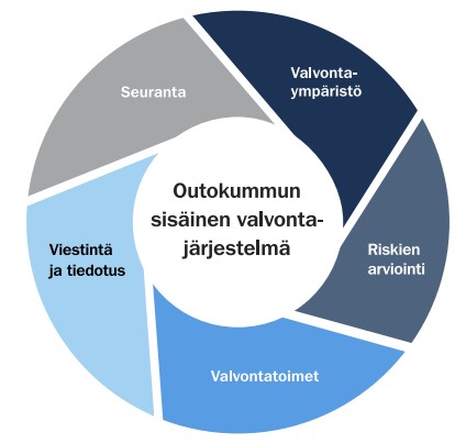 Outokumpu soveltaa sisäisessä valvontajärjestelmässä COSO:n sisäisen valvonnan viitekehystä (2013). Outokummun sisäinen valvontajärjestelmä pohjautuu sisäisen valvonnan politiikkaan ja siihen liittyviin ohjeisiin, yhteisiin tapoihin toimia, selkeästi määriteltyihin rooleihin ja vastuualueisiin sekä digitaalisella alustalla toimiville prosesseille. Yhtiön hallituksen hyväksymässä riskienhallintapolitiikassa määritellään konsernin riskienhallinnan tavoitteet, lähestymistavat ja vastuualueet. Riskienhallintaprosessi koostuu seuraavista viidestä vaiheesta: 1) riskien tunnistaminen, 2) riskien arviointi, 3) riskien pienentäminen, 4) valvontatoimet ja 5) riskien raportointi. Riskienhallinnasta, tärkeimmistä riskeistä ja mahdollisuuksista on lisää tietoa vuosikertomuksessa.