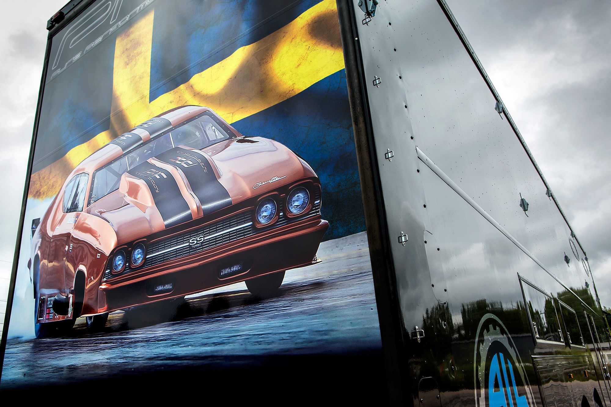 The trailer turned heads at its debut at the FIA European Drag Racing Championships at Sweden’s Tierp Arena in August 2015. And small wonder: from floor to ceiling, the surfaces look so flawlessly clean that you could virtually eat off them. “Most trailers aren’t built with the same finish as a regular kitchen. Ours is,” says PPF President Andreas Bäckström. “Supra 316plus makes a clear statement: it’s a high-performance material for a high-performance application.”