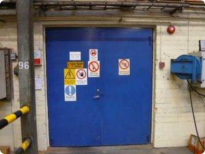 Du måste hålla dig på markerade gångvägar i lokalerna och respektera anvisnings- och förbudsskyltar. Utanför vissa dörrar, både utanför och inne i lokalerna, finns ljussignaler och en skylt som talar om när du inte får passera dörren.