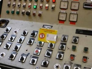 När du skall vistas i en maskins riskområde finns särskilda instruktioner som beskriver hur du säkert skall kunna utföra en sådan arbetsuppgift. Bl.a. skall du ha tillstånd från driftpersonalen, sätta upp en skylt på pulpeten och bryta och låsa de rörliga delarna på maskinen.